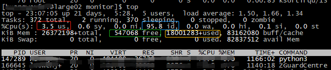 输入命令top会进入一个系统概要信息运行实时界面,每几秒就会更新一次数据,按q可以退出,界面的上面部分如下图: